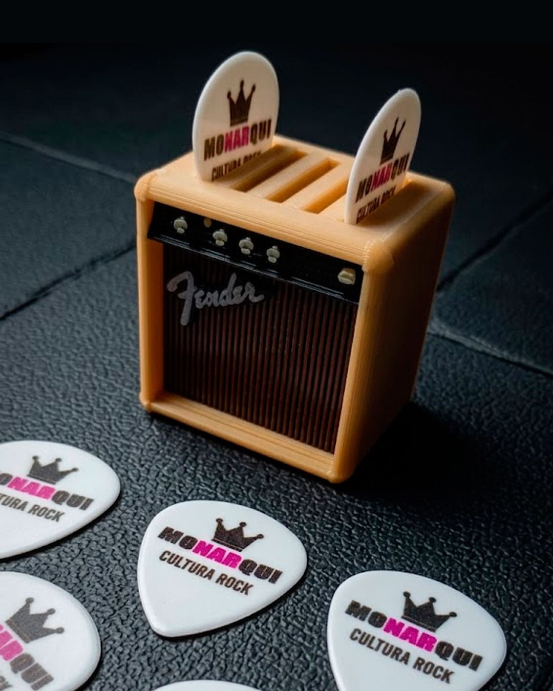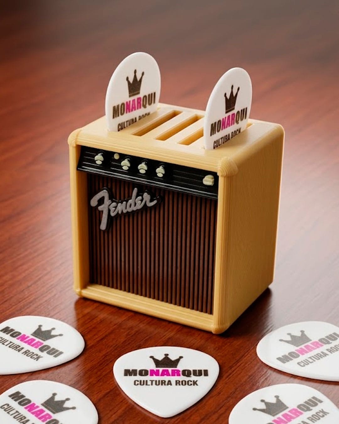 Descubre el Porta Puas Mini Amplificador Fender Vintage, un accesorio perfecto para mantener tus púas siempre al alcance. Con capacidad para almacenar hasta 5 púas, este compacto y funcional organizador es ideal para músicos que valoran la comodidad y el estilo.